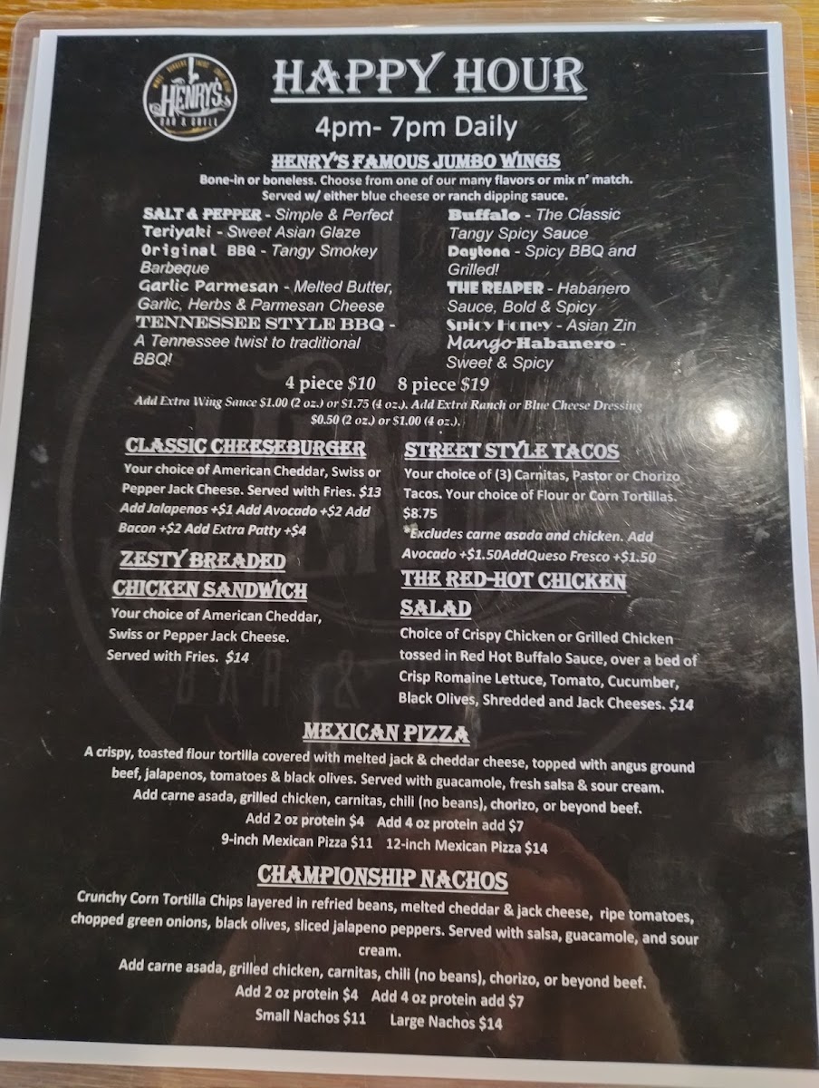 Customers rave about the tasty offerings and the vibrant vibe, making Henry's not just a dining spot, but a destination for good food and unforgettable moments. Whether you’re here for lunch, dinner, or happy hour, you're in for a treat you won’t forget!